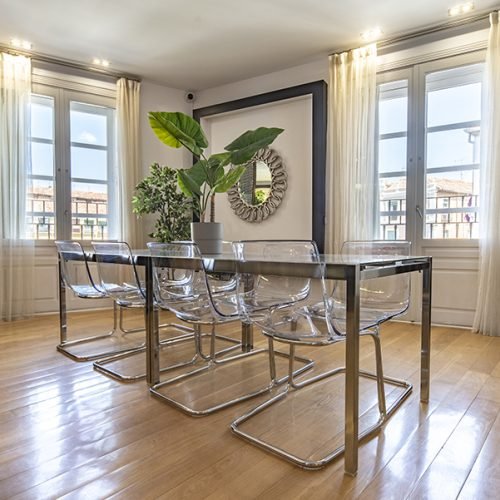 Our most premium residential option, right in the heart of Plaza Mayor and 10 minutes away walking from the IE University, enjoy the utmost comfort that Vizcainos has to offer in this very spacious and modernly decorated apartment. It includes breakfast each morning in the common kitchen, access to Vizcainos Gym, high speed wifi, heating and weekly change of bedsheets and towels!